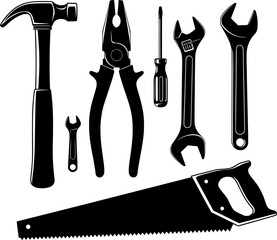vector carpenter tools silhouette white background