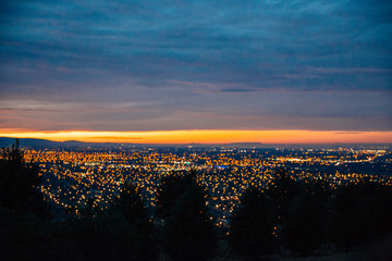 Silicon Valley and Green Hills at Dusk. Monument Peak, Ed R. Levin County Park, Milpitas, California, USA.