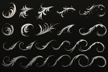 Abstract silver swirls on black; design elements