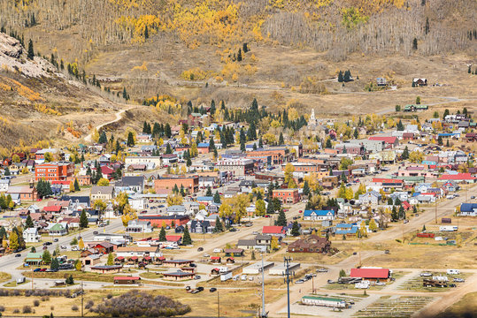 Aerial view of Silverton, Colorado in the fall