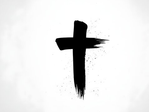 Hand-painted black cross on white background with brush strokes