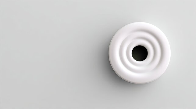 A white ceramic object with a hole in the center, placed on a gray surface. The minimalist design evokes a sense of simplicity and elegance.