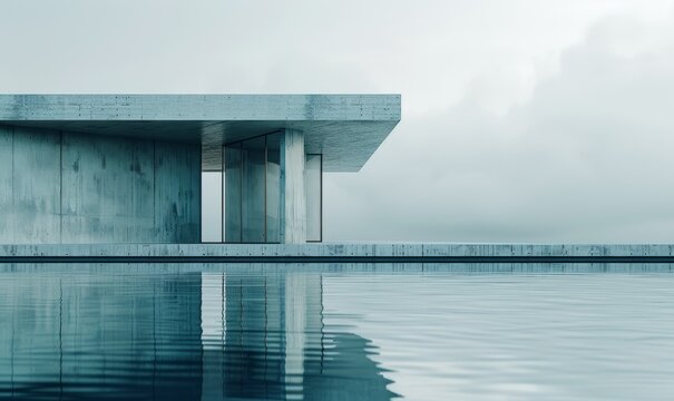 Minimalist architecture with clean lines and stark contrasts, emphasizing simplicity and functionality in modern design