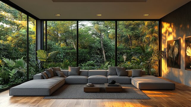 Modern living room with clean, minimal design and natural light, embodying simplicity and elegance.