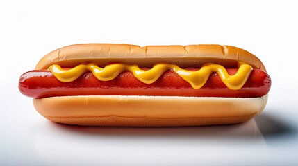 A single hot dog with mustard and ketchup on top, placed simply for a clean look. Classic fast food snack, ideal for menus, advertisements, packaging, or food-related design projects