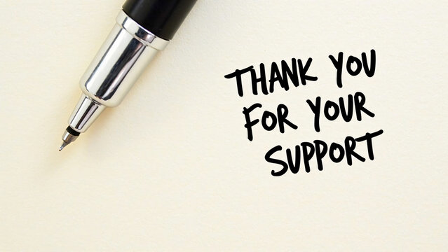 Close-up of fountain pen on light surface—“THANK YOU FOR YOUR SUPPORT” in bold black ink conveys tactile sincerity and handwritten appreciation.