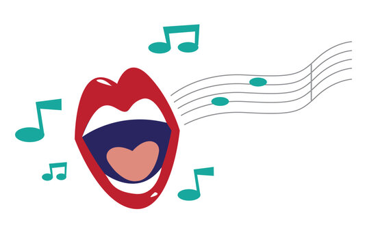 A Mouth Singing with Musical Notes. Editable Clip Art.