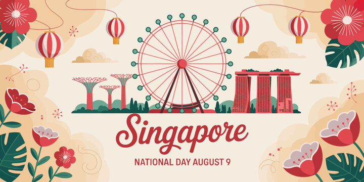 Vector illustration of Singapore's independence day, State singapore national day, Graphic for design element.
