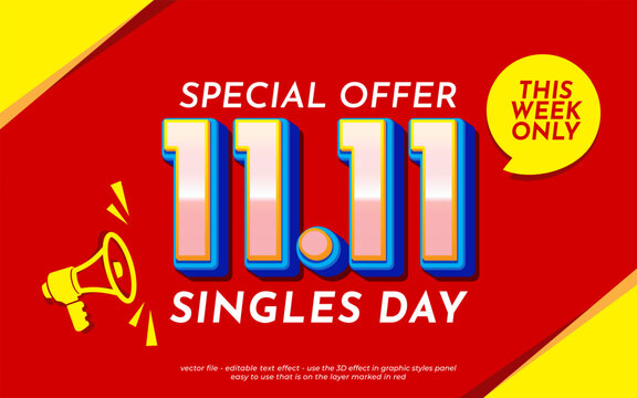 Singles Day Sale Banner Modern Design in Orange and Red Color. Eleven Eleven singles day vector