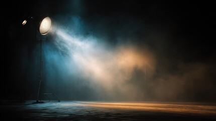Dramatic stage lighting with smoke effects and a single spotlight. event programs, museum guides, designed for cultural heritage projects and event programs, preserves heritage.