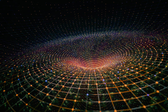 3D rendering of singularity of massive black hole or wormhole, concept of curved spacetime.