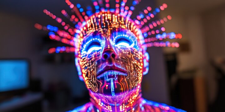 Digital brain illustration with futuristic background; concept of artificial intelligence singularity, machine learning, ai, deep learning blockchain neural network concept.