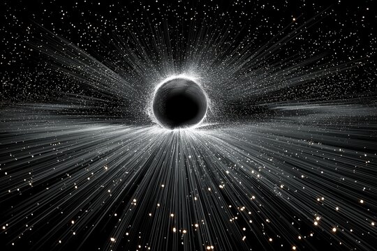 An abstract image of a black hole pulling in light, representing a singularity. A concept for physics, space, and powerful gravitational forces.