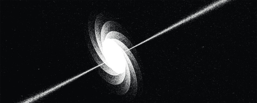 Neutron star with disc of plasma and  ray burst. Supermassive singularity in core off a galaxy, with noise texture . Event horizon .Vector illustration