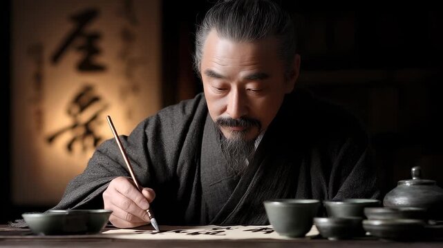Tang Dynasty Calligrapher Writing with Ink Brush