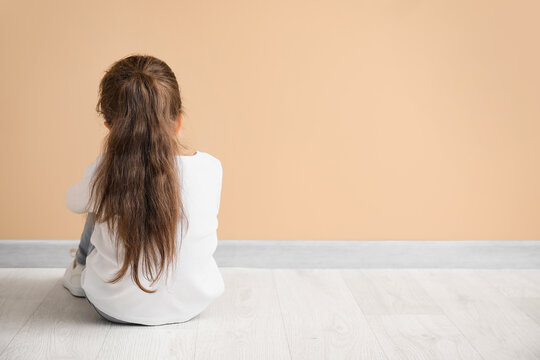 Adorable kitten sitting with its back turned on a blank background