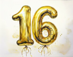 Balloon number 16, illustration for birthday or anniversary celebration, digital painting
