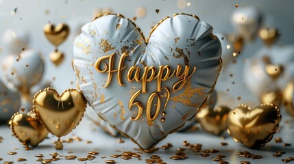 60th Birthday Celebration Decor Featuring Gold Balloons and Champagne Glasses with Elegant Copyspace for Personalized Text