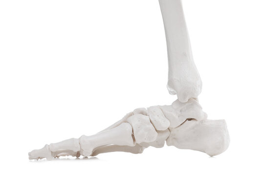 Doctor orthopedist shows to the anatomical model of the foot. Arthritis, foot injuries, flat feet and pain