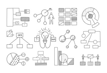 Business doodles Sketch set : infographics elements isolated,