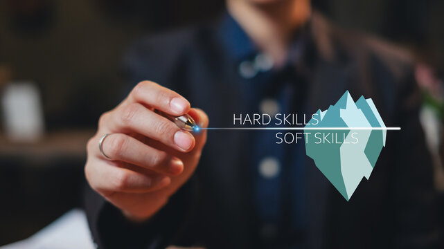 Power of Soft skills triangular pyramid template has 2 levels such as 15 percentage for Hard skills (technical and knowledge) 85 percentage from soft skills (well-developed and people skills). Vector.