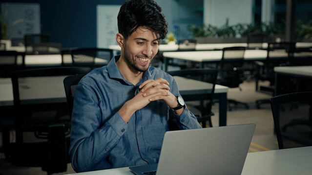 Young businessman talk remote online job interview distant conference chat male professional man communicating recording business video training webinar consult client speak to client by webcam call