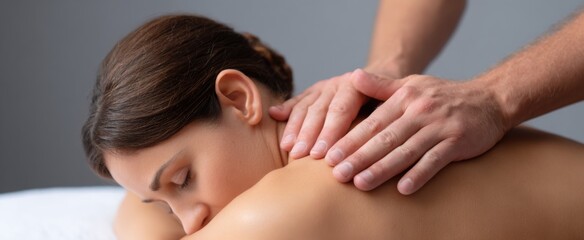The skilled therapist’s hands gracefully deliver soothing spa massage therapy on the back.