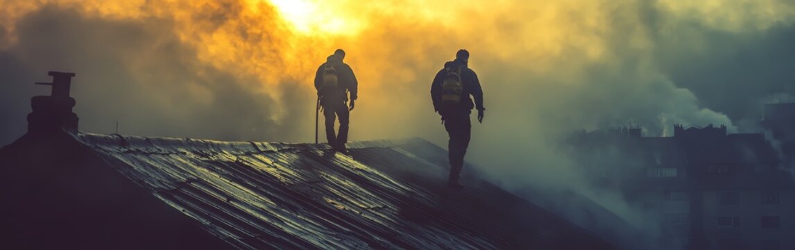 Skilled Handymen Repairing a House Roof in Cloudy Weather