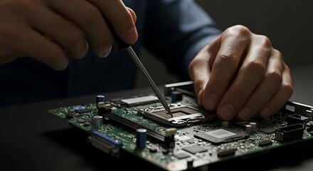 Skilled Technician Repairing Computer Hardware For It Services Templates
