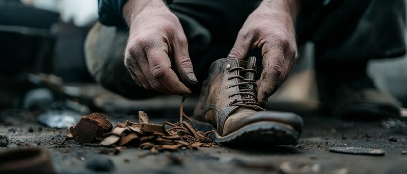 Cobbler skillfully repairing shoe highlighting artisan craftsmanship