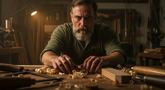 Carpentry craftsmanship: precise woodworking techniques displayed with skillful hand movements