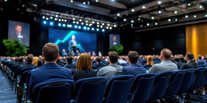 Professional conference event large auditorium business gathering modern venue audience perspective networking opportunities