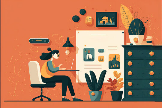 illustration woman learning new skills.