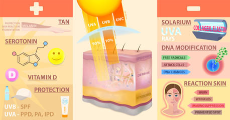 The penetration of sunlight into the skin. Plus-minus. Vector