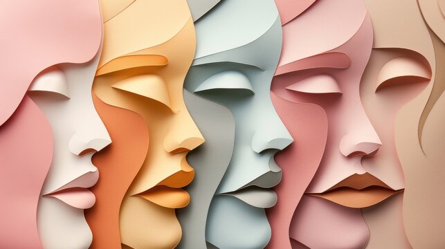 Paper women faces with different colors as symbol of diversity, multi-ethnic and inclusion concept