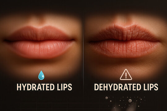 Hydration awareness understanding hydrated vs dehydrated lips home setting informative graphic close-up view health concept