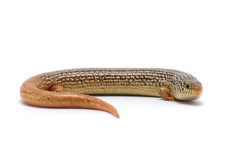 Five lined skink (Plestiodon fasciatus) on a white background.  Individual from South Carolina.