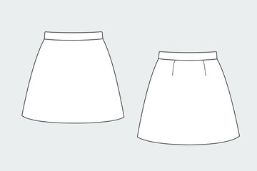 Female skirt vector template isolated on a grey background. Front and back view. Outline fashion technical sketch of clothes model.