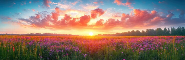 alpine meadow in the mountains and Nature valley with full of greenery and cloudy sky  with flowers