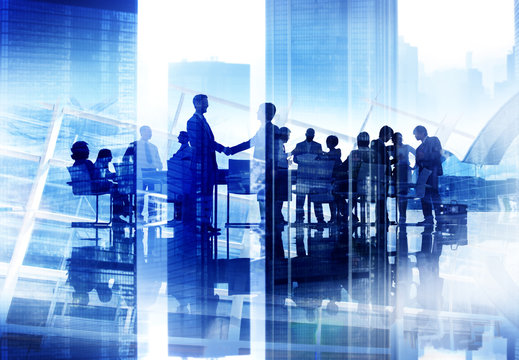 Silhouette Business Discussion Meeting Cityscape Team Concept