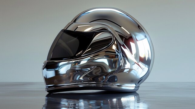 Shiny chrome helmet with a sleek appearance