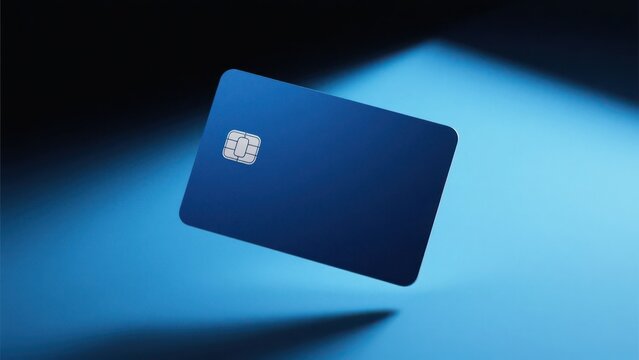 A blue, blank Visa card mockup, isolated on a white background, featuring a sleek design,