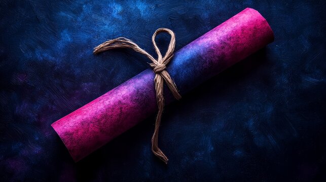 Elegant Diploma Scroll with Bow on Dark Colorful Background for Graduation Concept