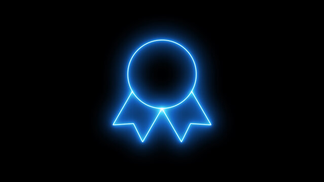 Glowing Neon Badge Icon Animation on Black Background, HD Motion Graphic Video Representing Awards and Achievements