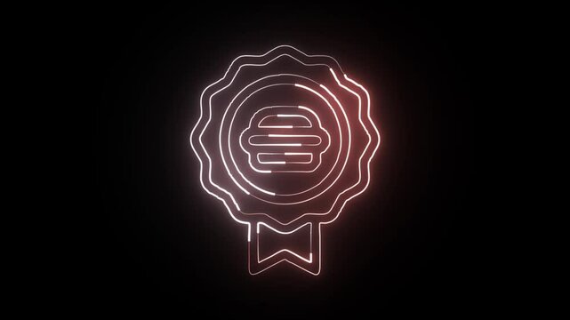 Glowing neon line Badge icon animation. Achievement badge free icon HD isolated on black background.