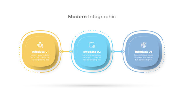 Business process with sleek and modern 3 step infographic template. Vector illustration. Ideal for corporate reports, marketing materials, and business presentations.