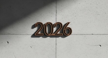 A futuristic date marker with the year 2026 on a sleek gray background