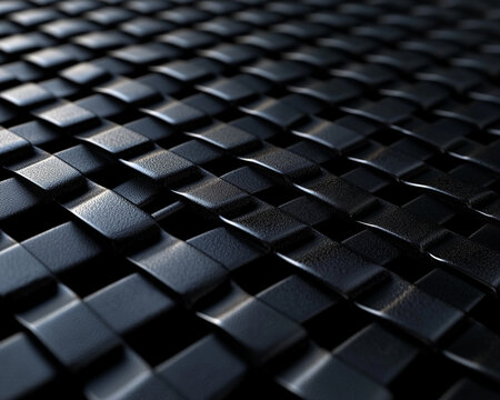 Close-up of a textured black woven surface with a smooth, sleek finish, symbolizing craftsmanship, design, and luxury in woven materials with a modern and minimalist appeal.