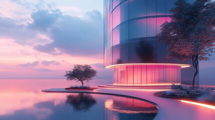 The elegant design of a modern communication tower, with its sleek lines and illuminated antennas piercing the night sky.