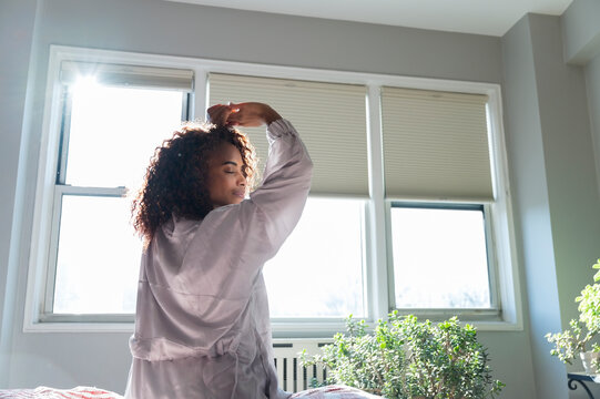 Woman stretching on bed